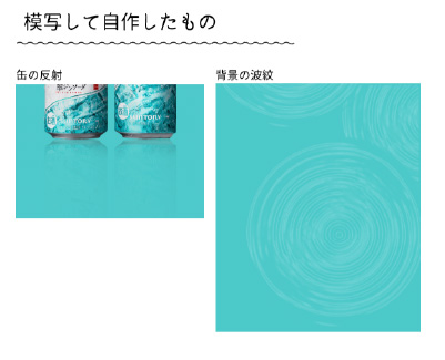 缶の反射は以前にも作ったことがあったので、問題なく作れたが、背景の波紋が難しくて、youtubeや記事などを見ながら作った。